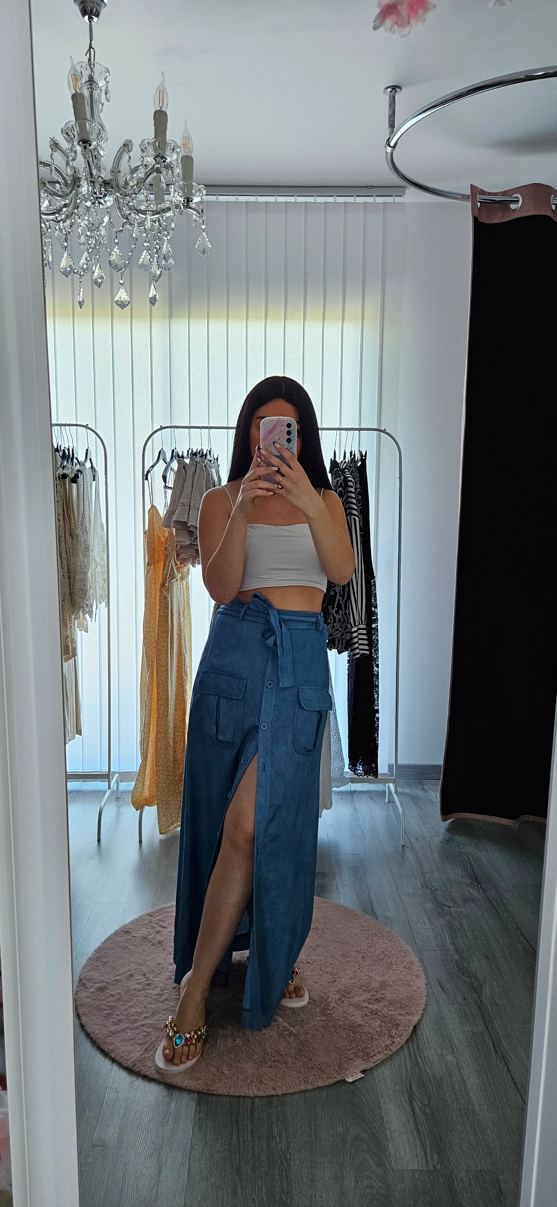 La Jupe Clara se distingue par sa fente subtile qui allonge la silhouette. Une pièce chic et féminine, parfaite pour un look moderne et élégant.